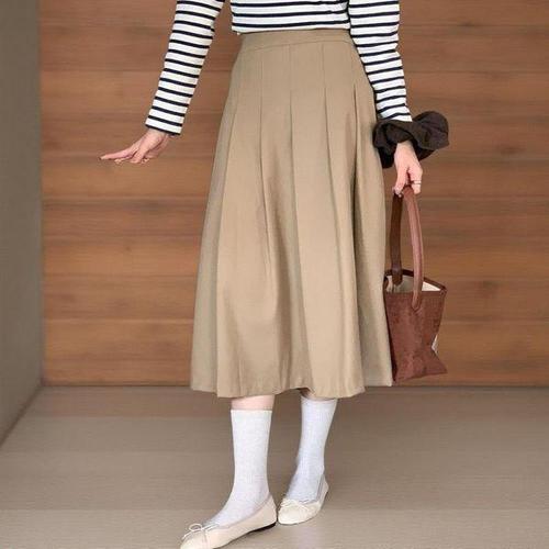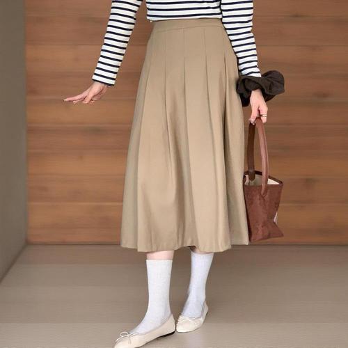 [신상오픈런]여성 플리츠 롱스커트 빅사이즈 뒷밴딩 가을 스판 핀턱