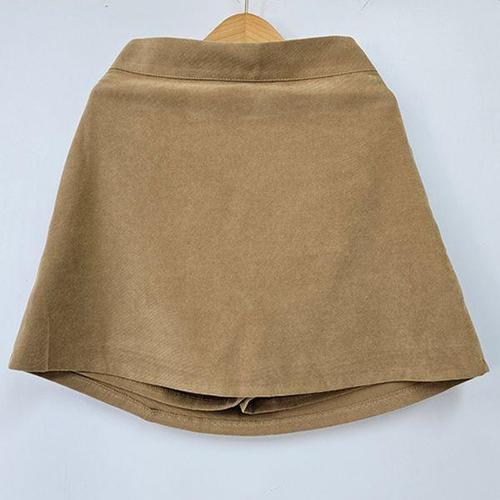 여성용 가을 겨울 빅사이즈 A라인 모직 단추 치마바지 미니 스커트