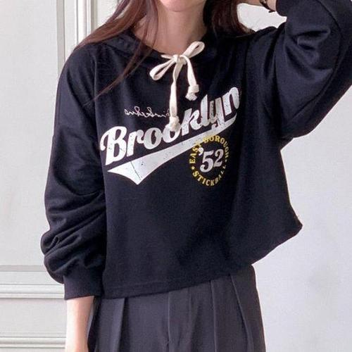 씨유언니 빅사이즈 여성 프린트 후드 맨투맨 긴팔티 데일리 크롭 후드티 봄가을
