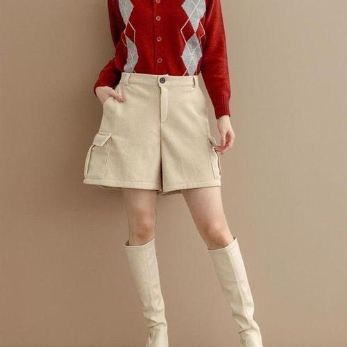 [신상오픈런]여성 빅사이즈 기모 카고 반바지 와이드 골덴 숏팬츠