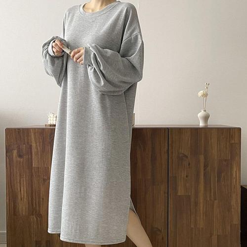 [옷자락]여자 볼륨긴팔 무채색 트임 빅사이즈 데일리 롱원피스