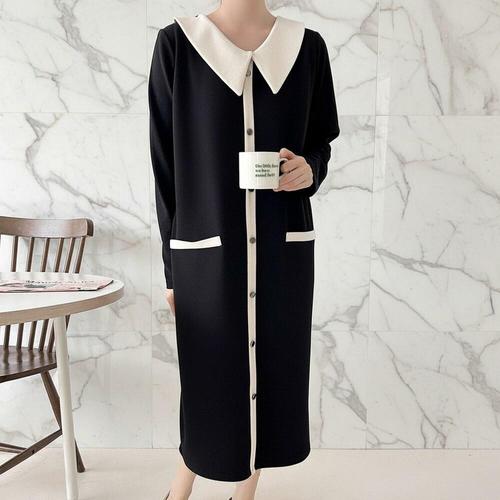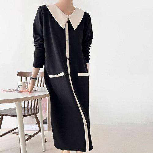 [옷자락]여자 배색 빅카라 버튼 빅사이즈 봄하객룩 롱원피스