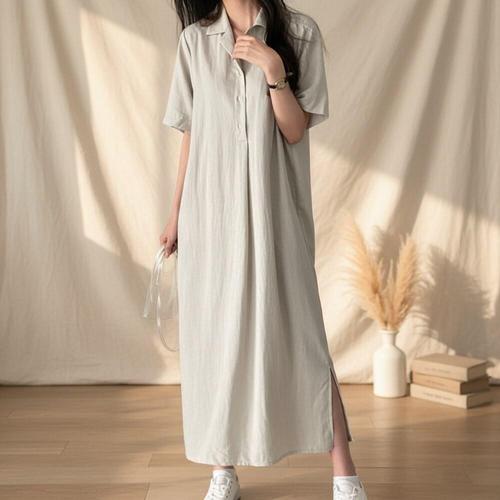 [옷자락]여성 봄여름 내추럴 루즈핏 반팔카라 원피스