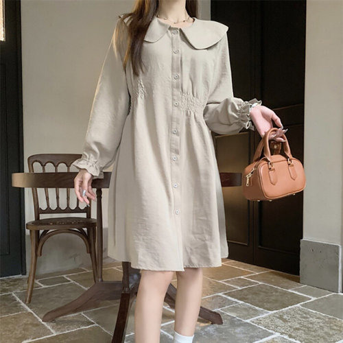 (~XXL까지) 플레아 플랫카라 진주버튼 플레어 원피스 봄 가을 하객룩 오피스룩 모임룩 격식룩 빅사이즈