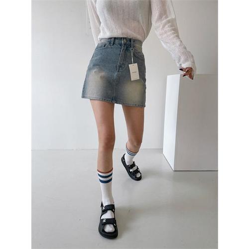 [다잇템]여자 워싱 클래식 진 빈티지 미니스커트 (10521841A)