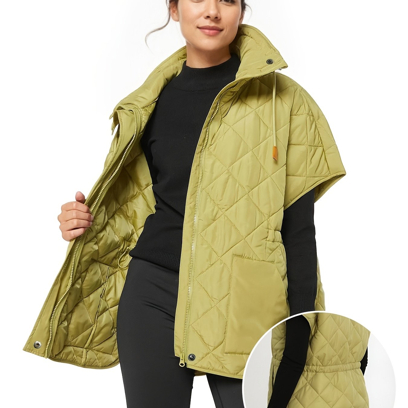 TEMU 여성 퀼팅 조끼 | 가벼운 패딩 깔창 조끼, 하이 스탠드 칼라 & 지퍼 앞면, 가을 & 겨울용 캐주얼 아우터, 단색, 분리형 밑단, 신치 허리, 세탁기 사용 가능