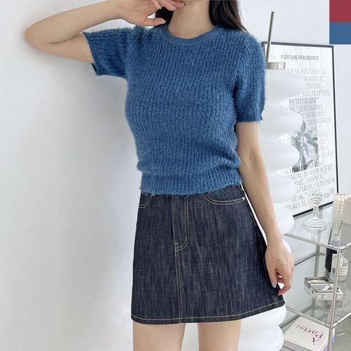 [다잇템]여자 큐빅 울 반짝 가을반팔티 빨간 언발 니트