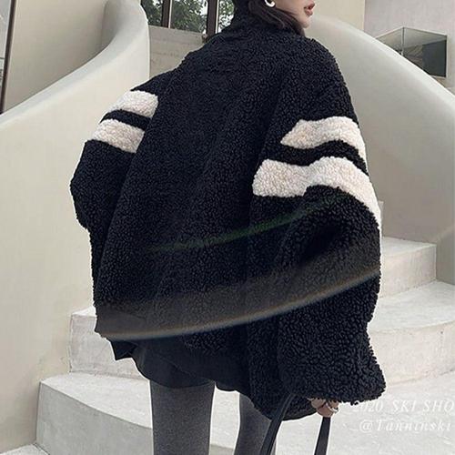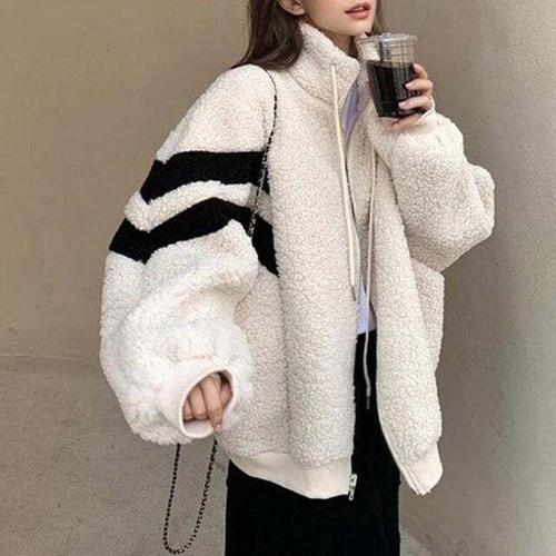 [오너클랜]인기상품 두줄 라인 뽀글이 점퍼 패셔너블 오버핏 아우터 [WFK5YRJ_260405]