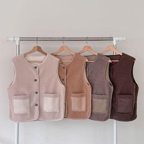 [신상오픈런]|CSJ69A5|여성 양털 조끼 배색 스웨이드 포켓 단추 겨울용 뽀글이_23605574_597559