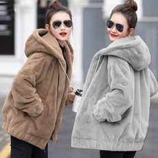 겨울코트 후드집업 털점퍼 시크 루즈핏 아우터 부드러운 따뜻한 뽀글이 방한코트 빅사이즈