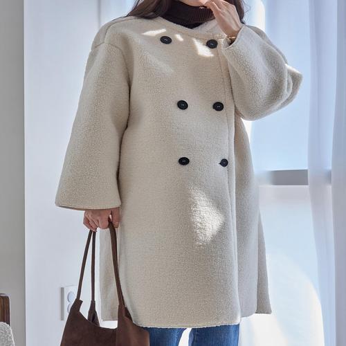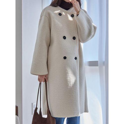 [르뚜앙]단맛 겨울 더블 롱코트 양털 뽀글이 오버핏 루즈핏 아이보리 브라운 노카라 코트