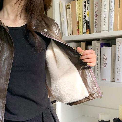 |CHJ6BC0|여성 폴리 뽀글이 안감 세미 크롭 가죽 자켓