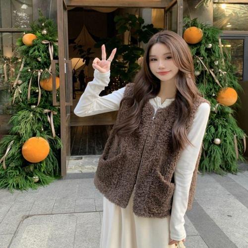 뽀글이 이너 데일리 집업 여성 조끼 베스트 WFLX669
