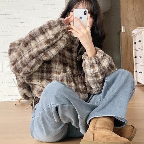 [고퀄/따뜻] 리마인 체크 덤블 뽀글이 후리스 반집업 맨투맨 (2color)