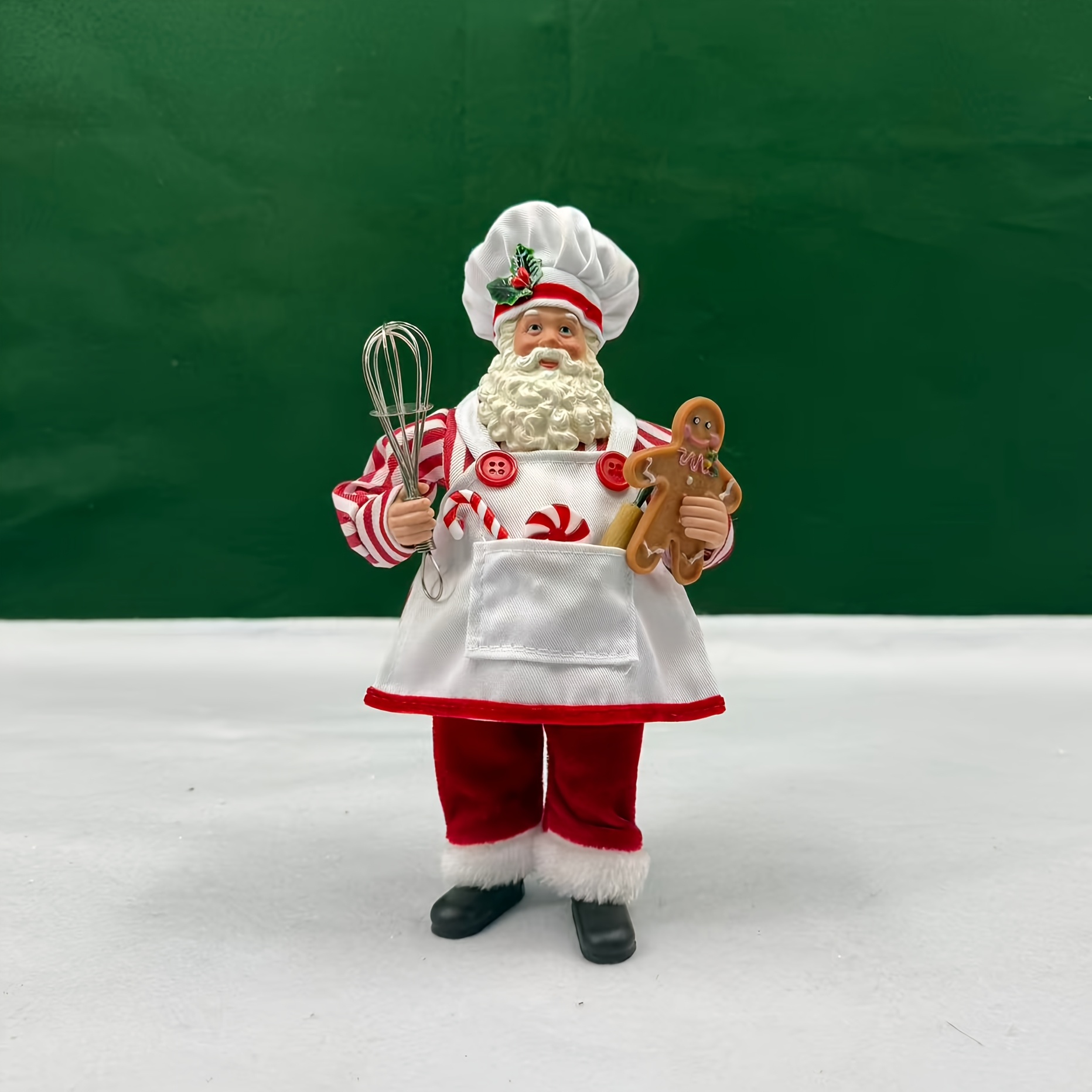 TEMU 빈티지 산타 셰프 피규어 - 레드 & 화이트 앞치마, 골든 모자 & 지팡이가 있는 축제 주방 장식, 집, 거실 또는 침실을 위한 완벽한 크리스마스 선물, 전기 필요 없음, 크리스마스 장식, 크리스마스 트리 장식, 크리스마스 트리 장식, 산타 크리스마스용, 크리스마스 홈 장식, 할로윈 장식, 피규어, 홈 데코용 장식