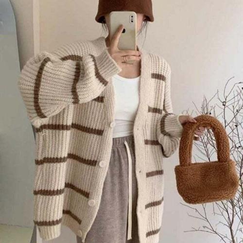여성 캐주얼 V넥 오버핏 카디건 부드러운 면 소재 심플한 데일리 카디건
