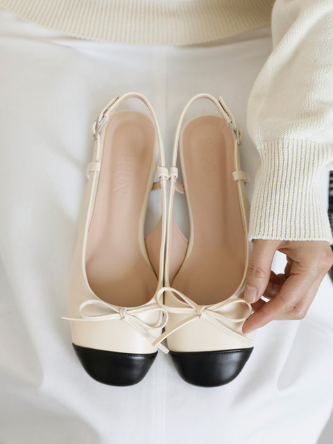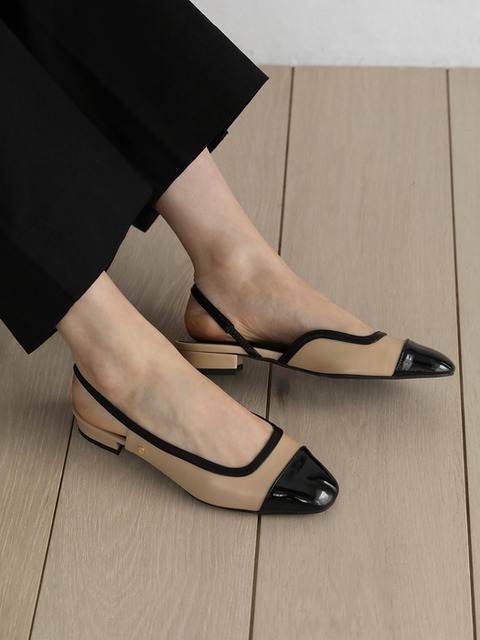 [사뿐] 베일리 투톤 슬링백 플랫슈즈 (2cm)