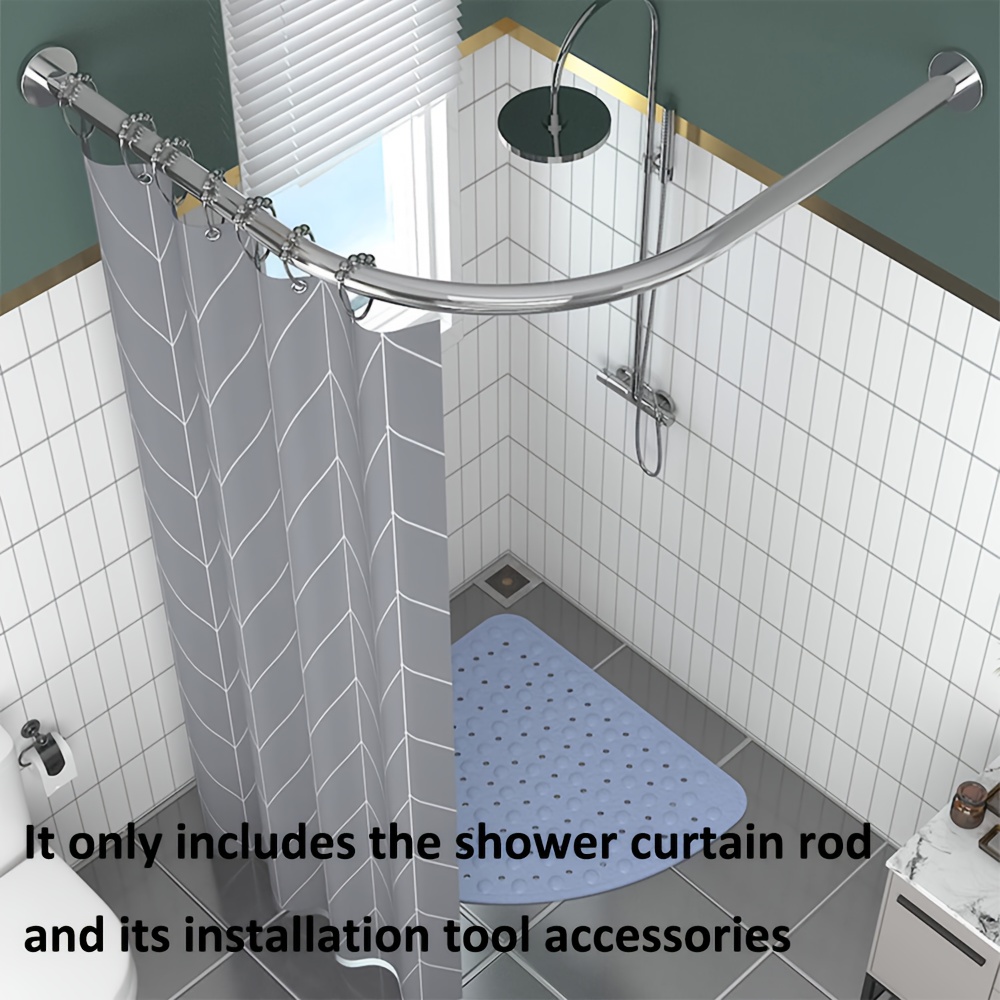 TEMU 조절 가능한 곡선형 샤워봉 – 드릴 없는 스테인리스 텐션 아크 봉, 공간 절약 L자형 디자인, 방청 & 튼튼한 욕실/욕조용 (간편 설치)