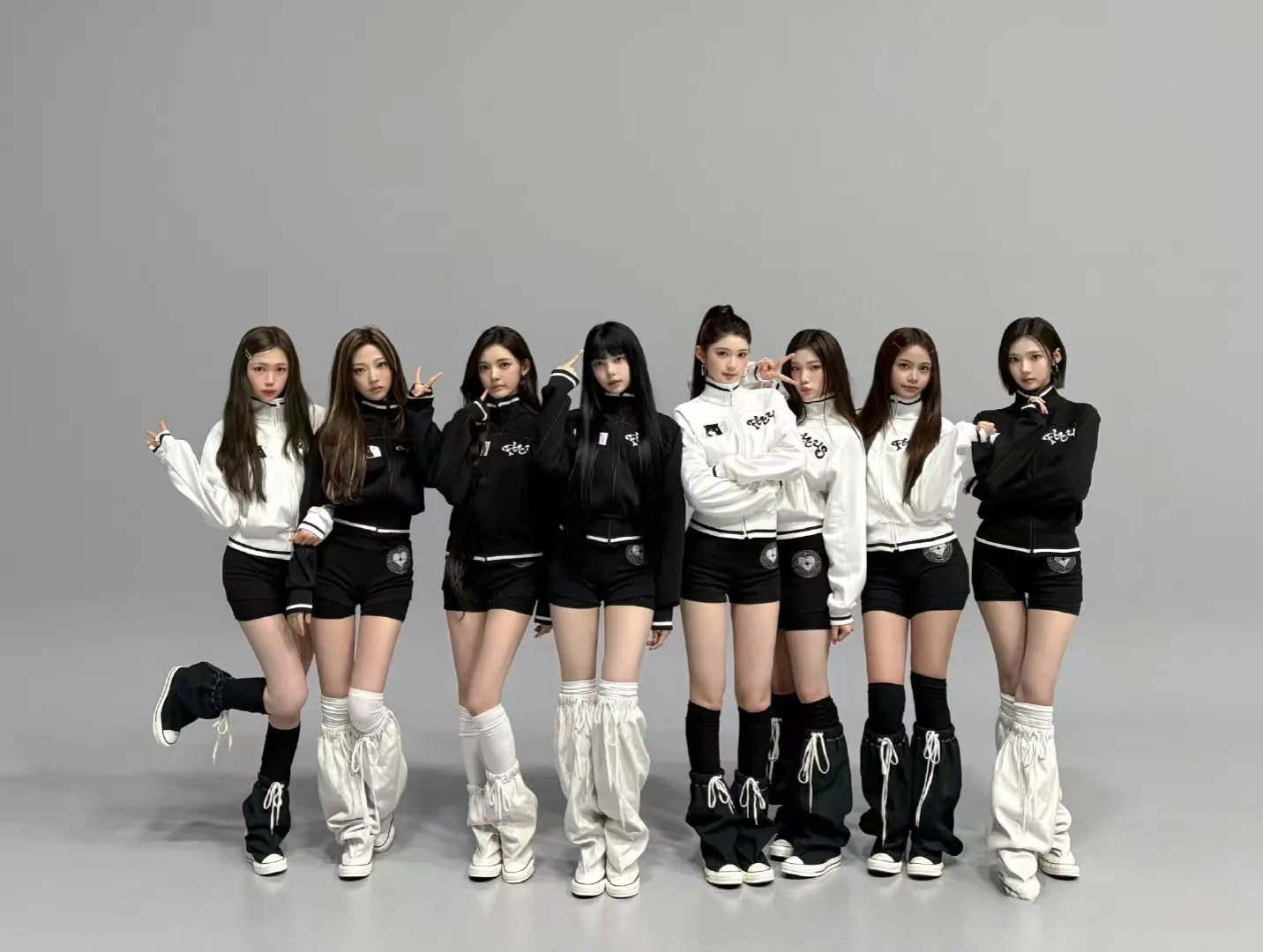 Hearts2Hearts 여성 댄스 공연 의상 레깅스 자켓 스웨트셔츠 트렌디한 봄 컬렉션 유하 무대 의상 세트