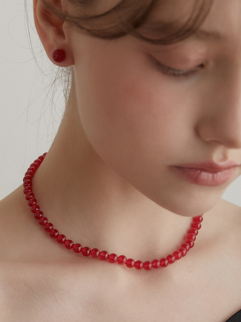 [타티아나] (실버925) 레드 제이드 캔디 볼 목걸이 NZ2143