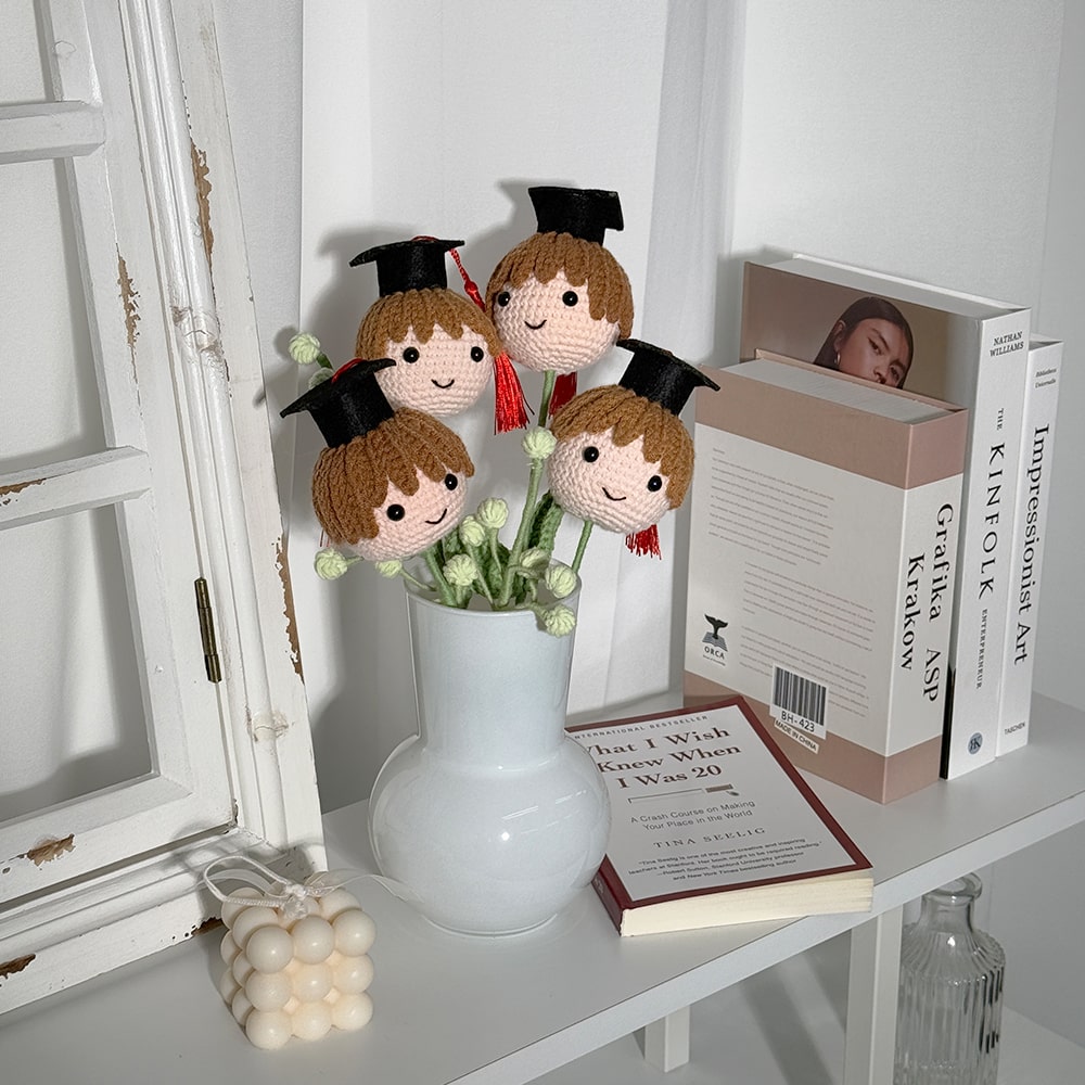 뜨개남아(학사모) 니트꽃 조화 장식 꽃다발 조화 꽃