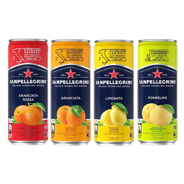 산펠레그리노 탄산음료 4종 혼합 330ml x 16캔 (4가지 맛) 탄산수 아란시아타 로사 폼펠모 레몬