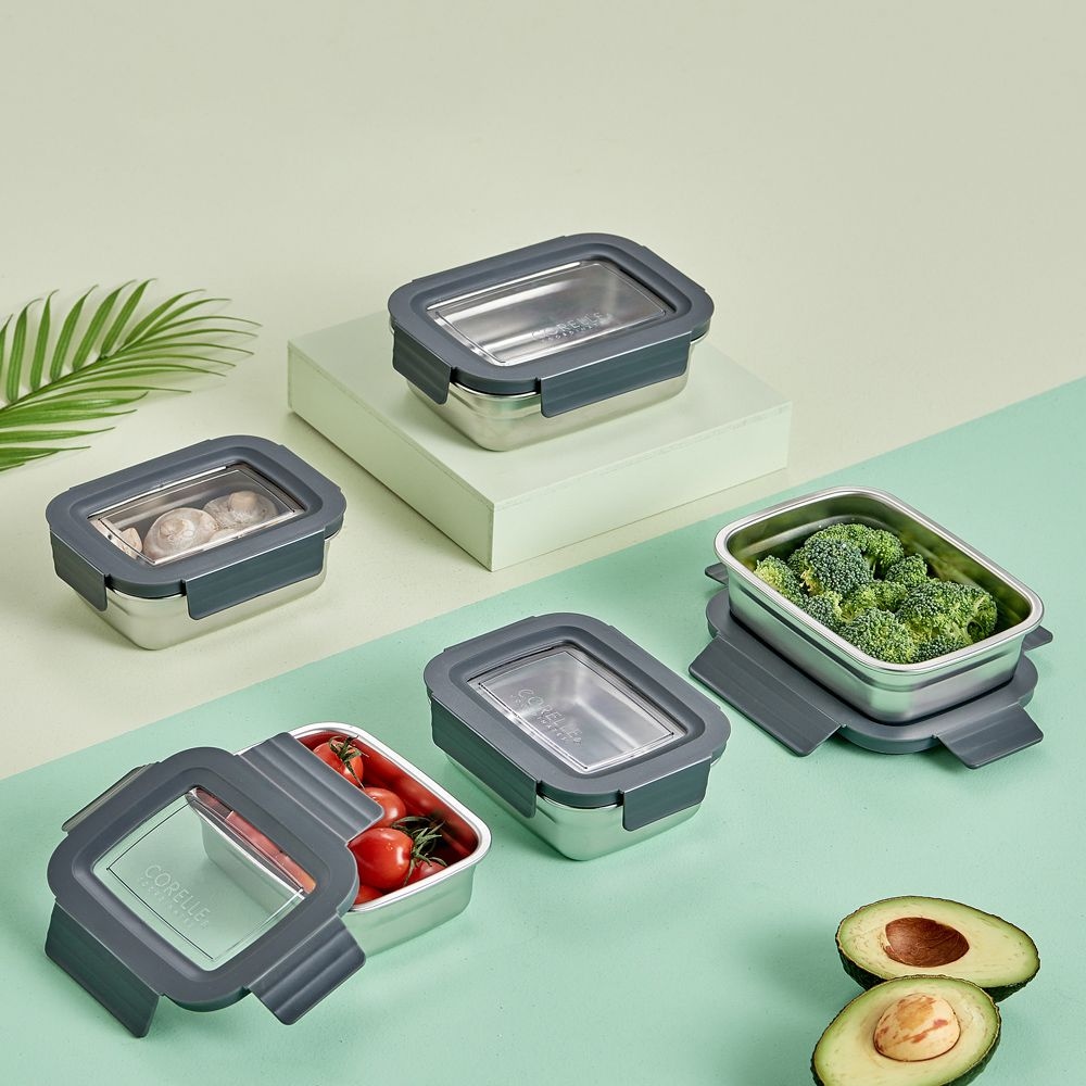 TEMU 3pcs 스테인리스 스틸 식품 보관 용기 세트 - 밀봉된 커버, 누출 방지 냉동 보관용기, 과일/채소/식사 준비용, 공간 절약형 현대식 식료품 장식 (세척기 안전 및 쌓을 수 있음, 완벽한 집들이 선물)