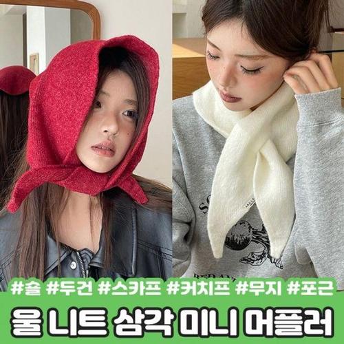 현혜가 양모 니트 삼각 스카프 숄 니트 다기능 보온 미니 목도리