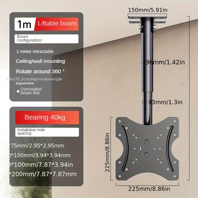 TEMU TV 행잉 스탠드, 천장형 TV 스탠드 풀 모션 TV 스탠드, 대부분의 32-75인치 평면/곡면 TV/모니터용, 회전 틸트 높이 조절 가능