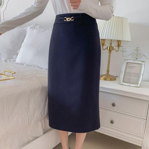 [다잇템]여자 사슬 보온 상견례 일자 슬릿 롱스커트