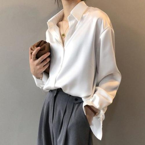 [오너클랜]인기상품 새틴 카라넥 여성 셔츠 긴팔블라우스 루즈핏 오피스룩 [WF8AA5A_250915]