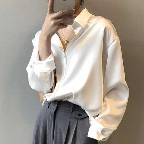 지고다그 1+1 여성 새틴 실크 블라우스 긴팔 광택 셔츠 우아한 오피스룩 SX68461