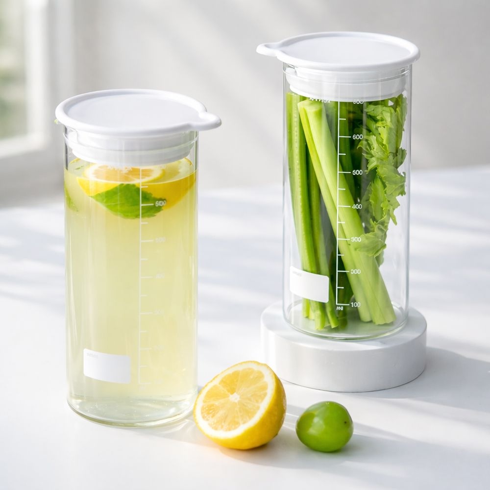 [리본제이 듀오 컨테이너 내열유리 밀폐용기 500ml / 밀프렙 샐러드보틀 유리병 캐니스터