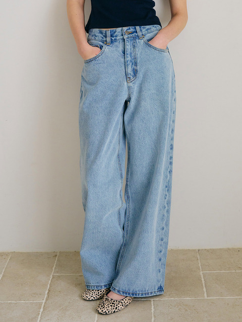 [히어리] 셀리 클래식 와이드 데님 팬츠_라이트블루