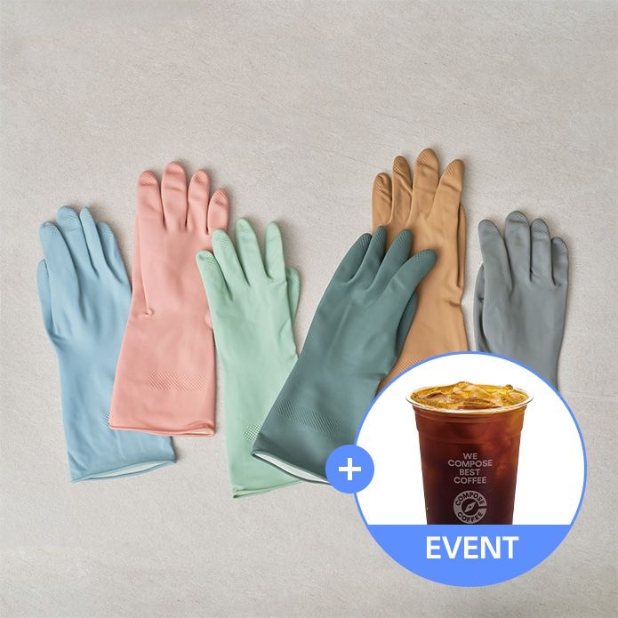 걸이가 필요없는 고리형 고무장갑 3+3세트 (2컬러 혼합)