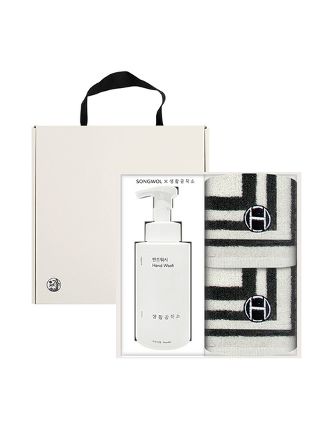 [송월타올] 블랙라벨 200g 항균 세면타올 1매 + 생활공작소 핸드워시500ml 선물세트 답례품