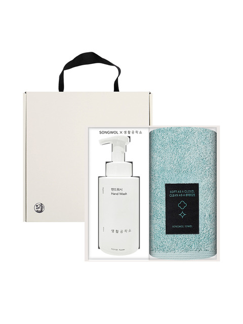 [송월타올] 스노우 세면타월 120g 2매 + 생활공작소 핸드워시500ml 선물세트 답례품