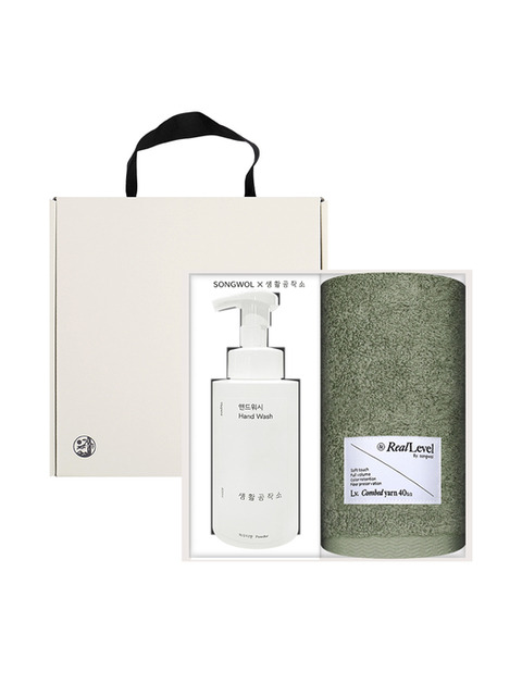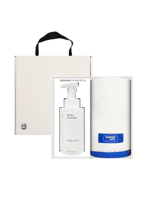 [송월타올] 라운드오프 180g 세면타올 1매 + 생활공작소 핸드워시500ml 선물세트 답례품