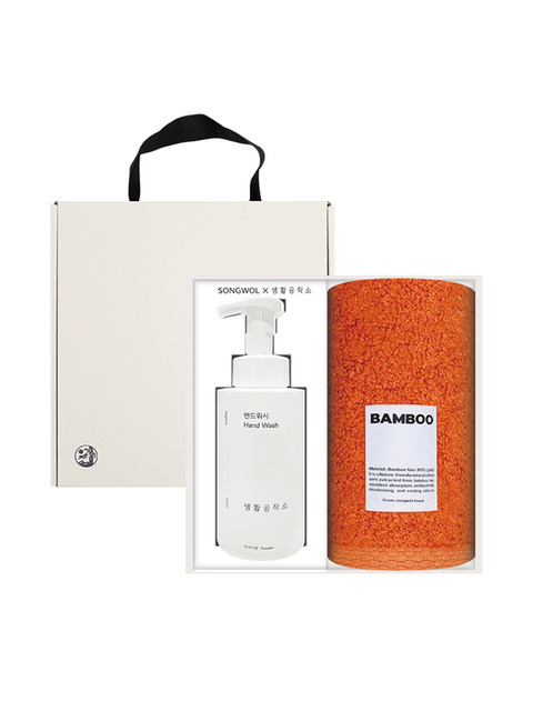 [송월타올] 스텔라 뱀부타월 250g 1매 + 생활공작소 핸드워시500ml 선물세트 답례품