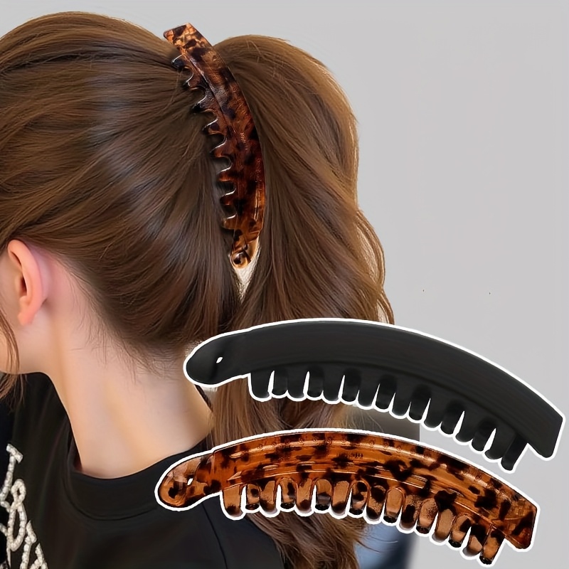 TEMU 새로운 바나나 클립 2개 세트, 여성용 스타일리시하고 우아한 헤어 장식, 높은 포니테일 고정에 적합, 데이트, 파티 및 오피스룩에 이상적