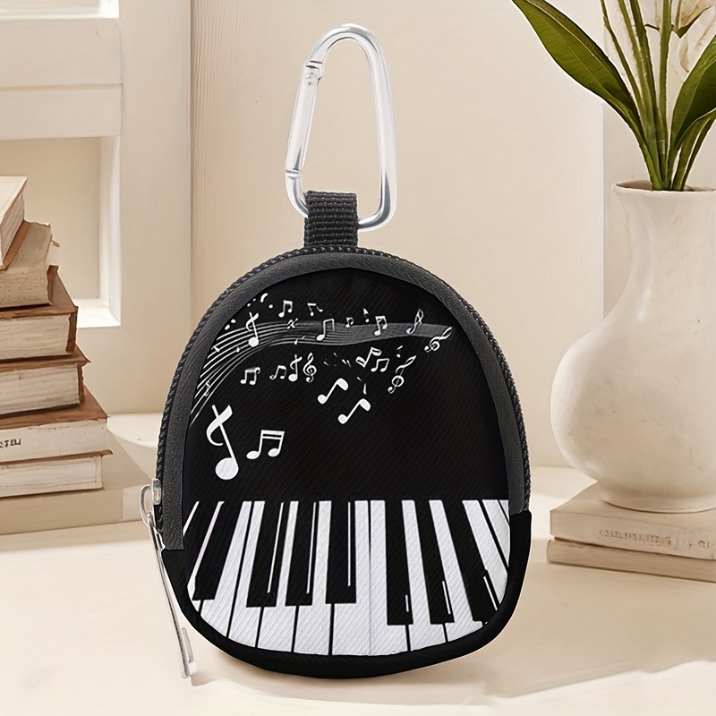 TEMU 피아노 음표 패턴 프린트 미니 지갑, 가벼운 지퍼 코인 지갑, 이어폰 또는 열쇠를 위한 후크 클립 및 파우치 포함, 남녀 모두에게 적합.