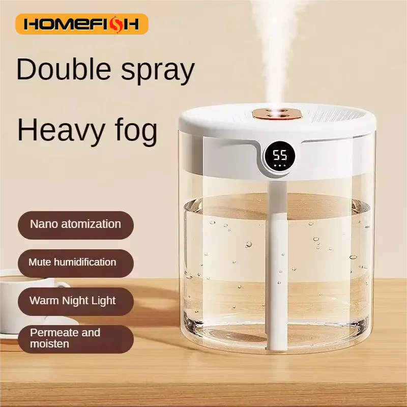홈피쉬 2L 듀얼 스프레이 가습기 USB 저소음 침실 사무실 데스크탑 미니 디퓨저 LED 디지털 디스플레이 야간 조명 포함