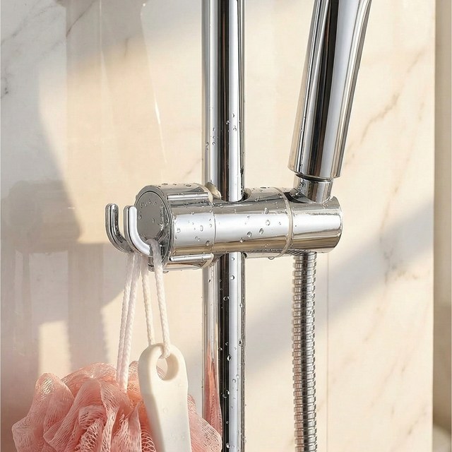 1평욕실 분해없는 쏙끼움 슬라이드바 샤워기 거치대 360도 회전 후크형