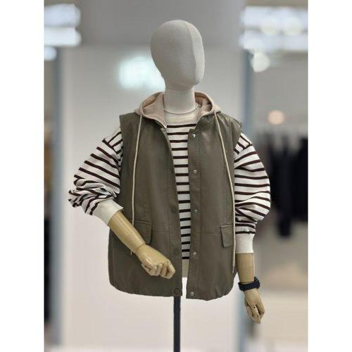 은창)린넨 후드 스트링 써클링 지퍼 조끼 여름 베스트