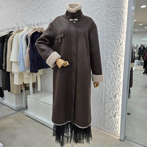 [미니멈에브리데이][미니멈 에브리데이]양털 하이넥 레더 무스탕 롱 코트 (EB4JH013D)