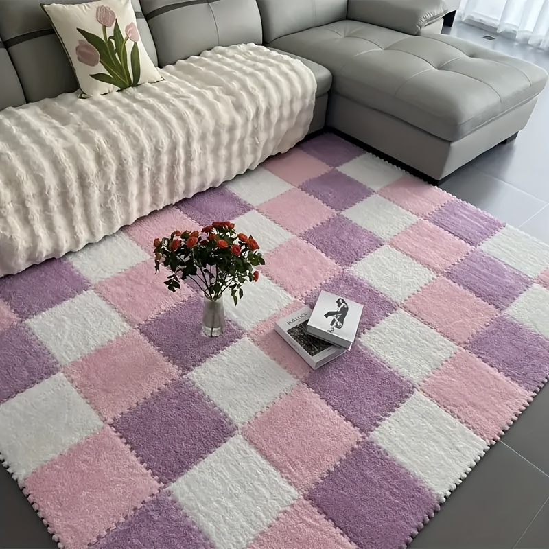 TEMU 24개 세트 플러피 인터로킹 바닥 매트, 손세탁 가능한 충격 흡수 방음 패드, 부드러운 매트, 침대 옆과 거실을 위한 완벽한 장식 러그