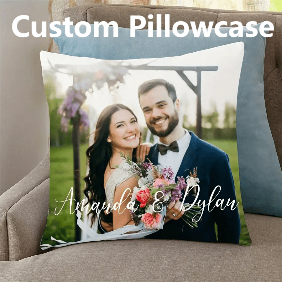 TEMU 맞춤형 사진 베개커버, DIY 쿠션 커버, 웨딩 기념품 장식, 개인화 사진 소프트 커스터마이징, 독특하고 개인화된 이상적인 선물, 그녀, 남자친구, , 아빠, 엄마, 가족, 친구, 애완동물 기념일에 적합