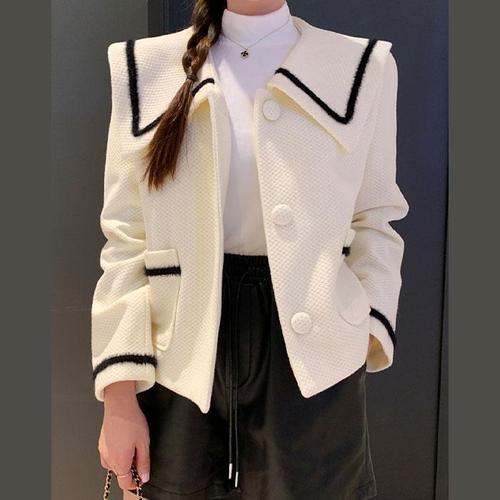 [바이어스]루즈핏 세라 카라넥 누빔 안감 배색 트위드 자켓 코디 (11342814A)