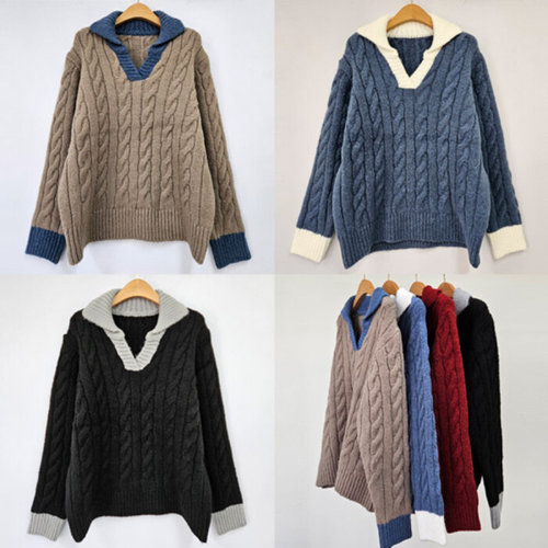 나야홍 / 위쉬몰 EB 세라배색꽈배기카라티(T609H512) 빅사이즈