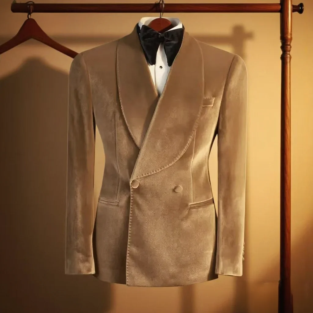 정장 벨벳 남성 수트 블레이저 더블 브레스티드 재킷 1피스 우아한 슬림 핏 남성 의류 웨딩 남성 비즈니스 캐주얼 코트